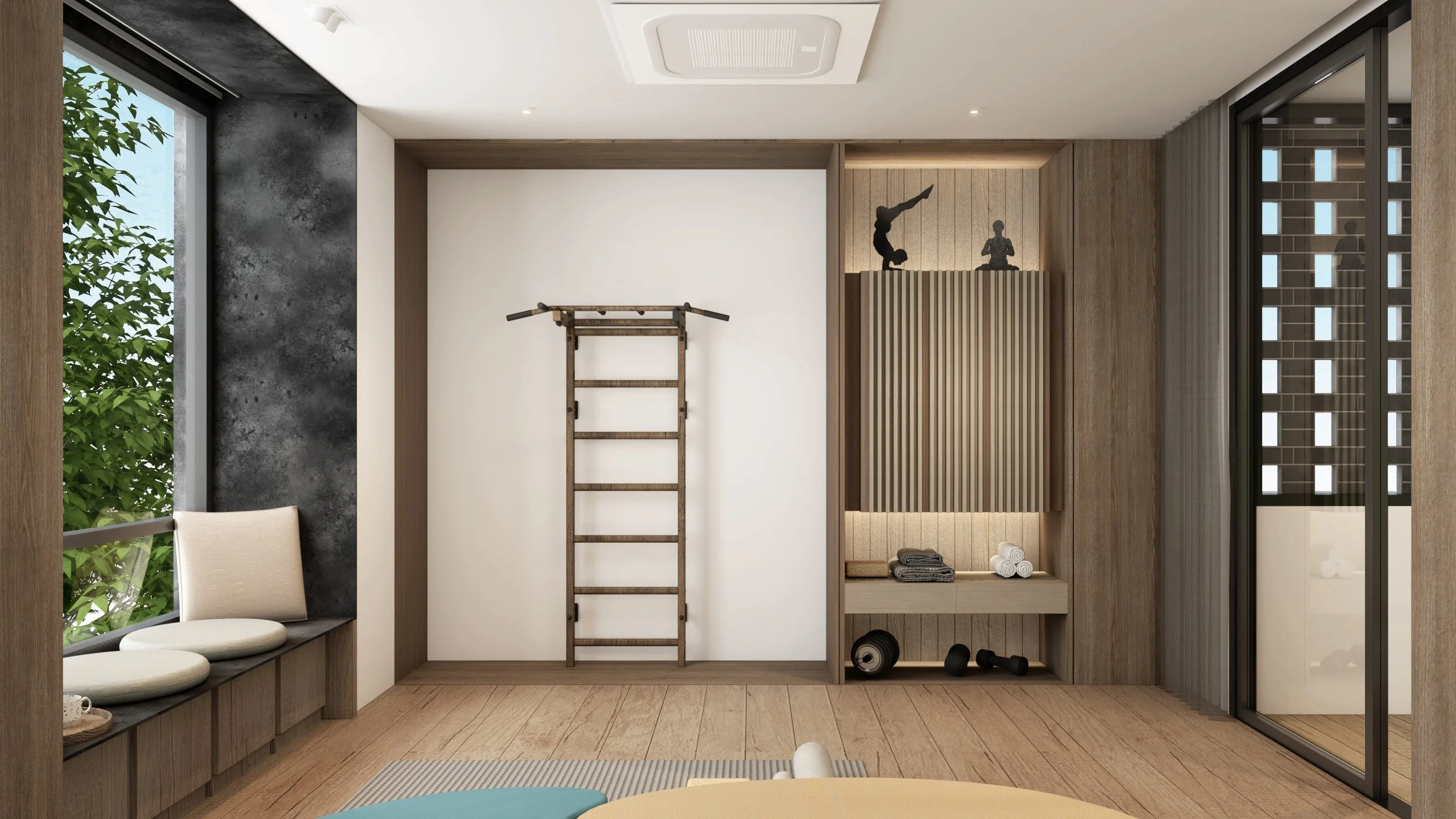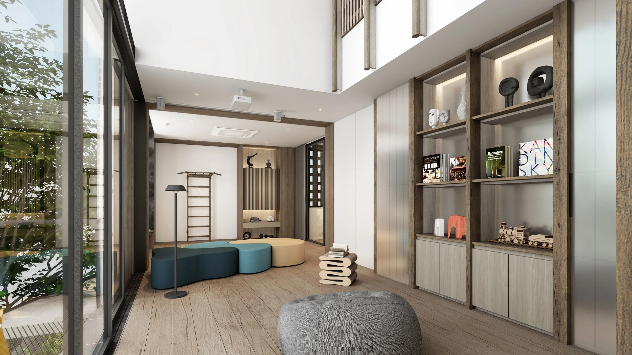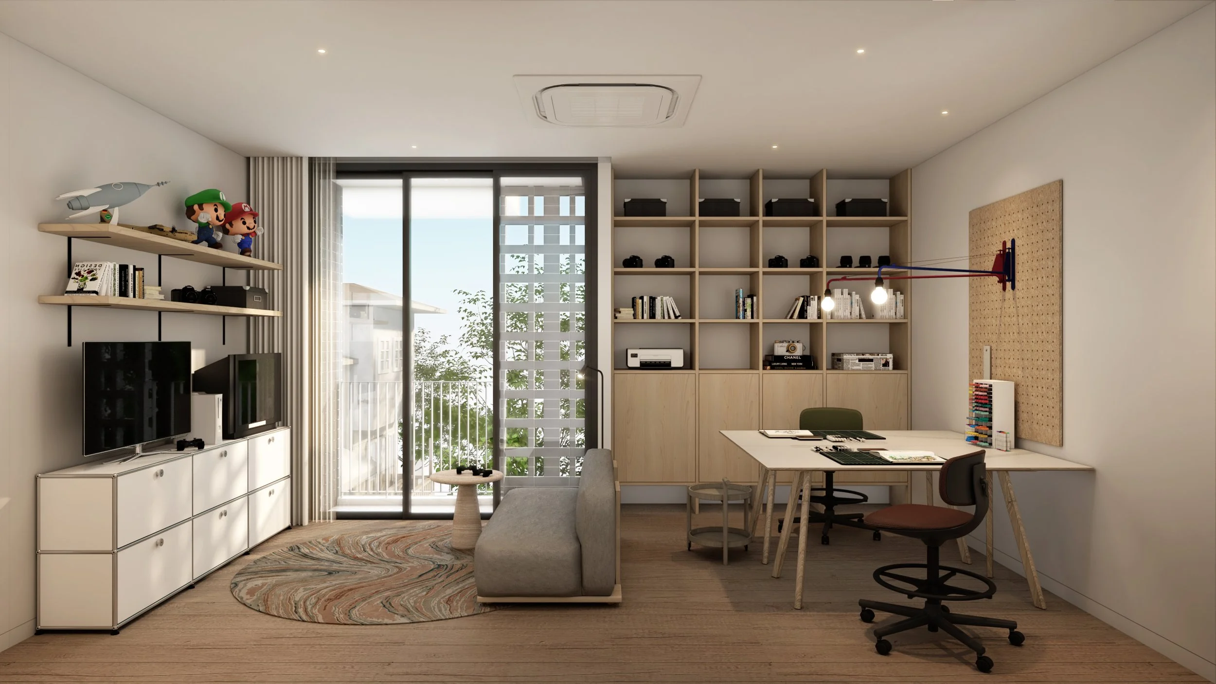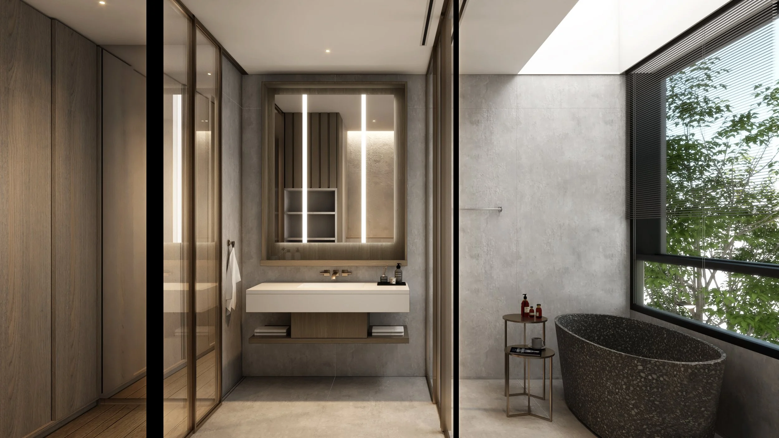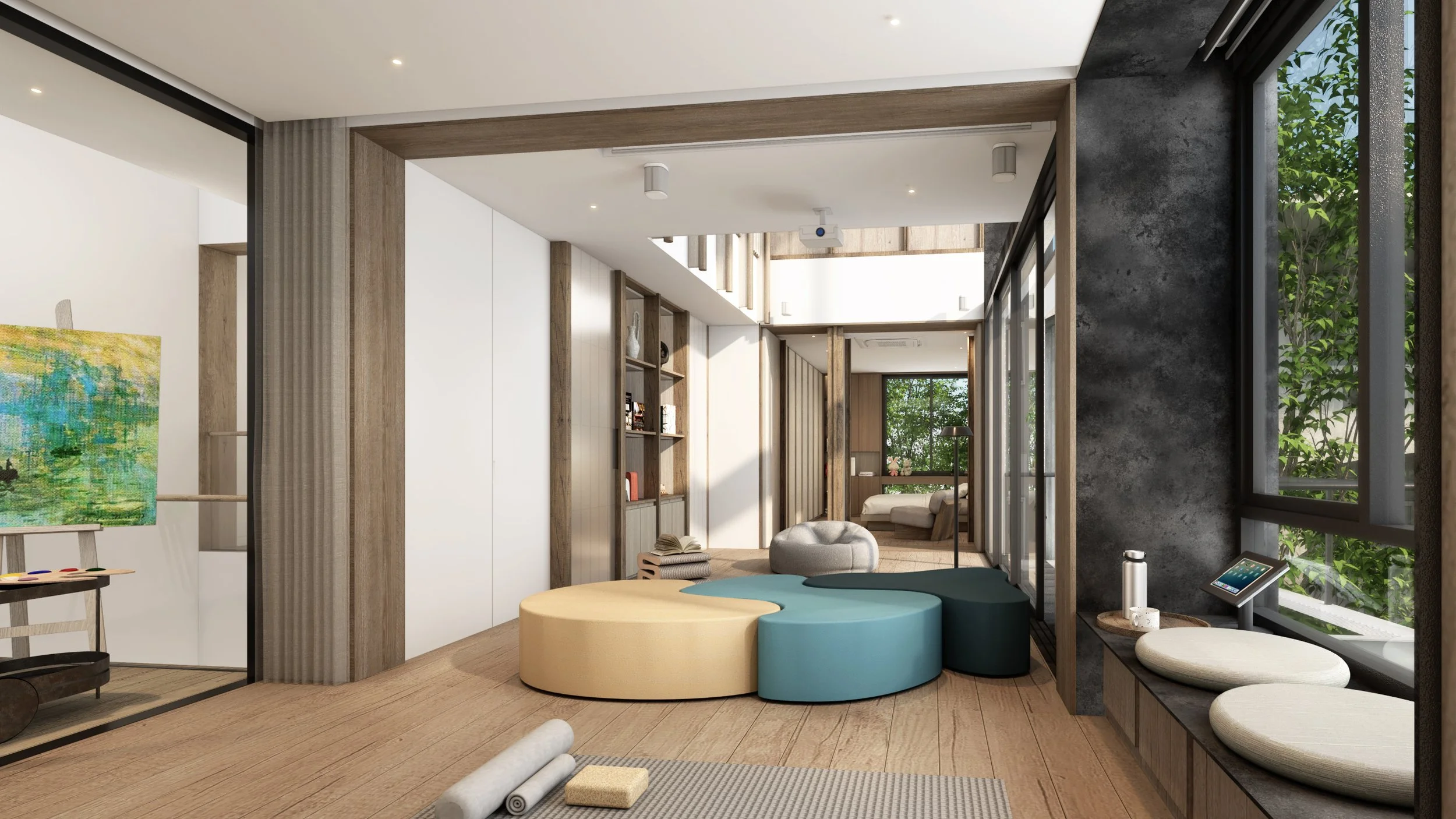 Rooftop: Designed as a gathering deck, the rooftop offers panoramic views of the tree canopy with the city skyline in the distance—an urban oasis elevated above the bustle below.