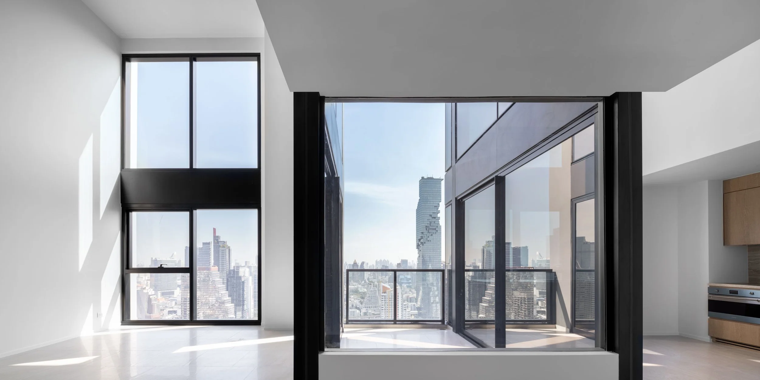 Extensive use of glass walls and windows invites natural light into the interior, while aluminum screening elements provide a second skin to mitigate solar heat gain. Interstitial negative spaces between the forms are creatively utilized as shaded courtyards and garden balconies, enhancing the building’s livability and connection to nature.